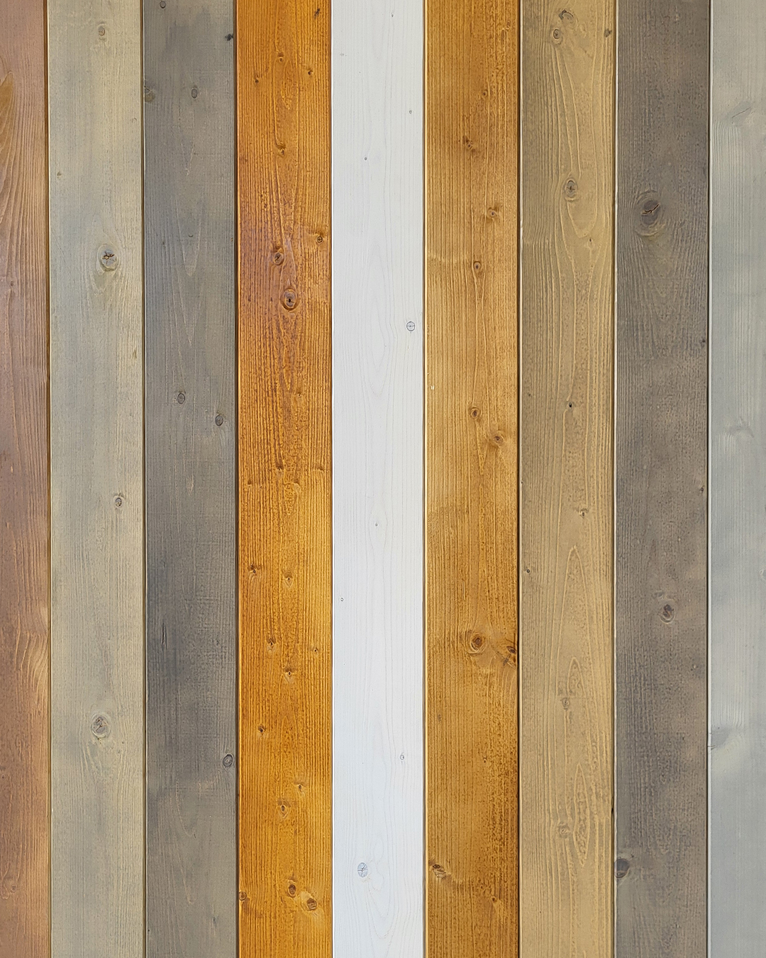 Na raspolaganju su 4 vrste boja i premaza, i to 3 za bojenje spoljnih drvenih elemenata i jedan za bojenje elemenata koji se stavljaju u enterijer :